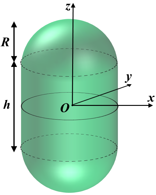 \[\sigma_z^\text{cyl} = \sigma^\text{sph}\]We can calculate \(F_\phi\) by imaging we cut the spherocylinder in half down the z-axis and consider the amount of force it would take to keep the two halves together.